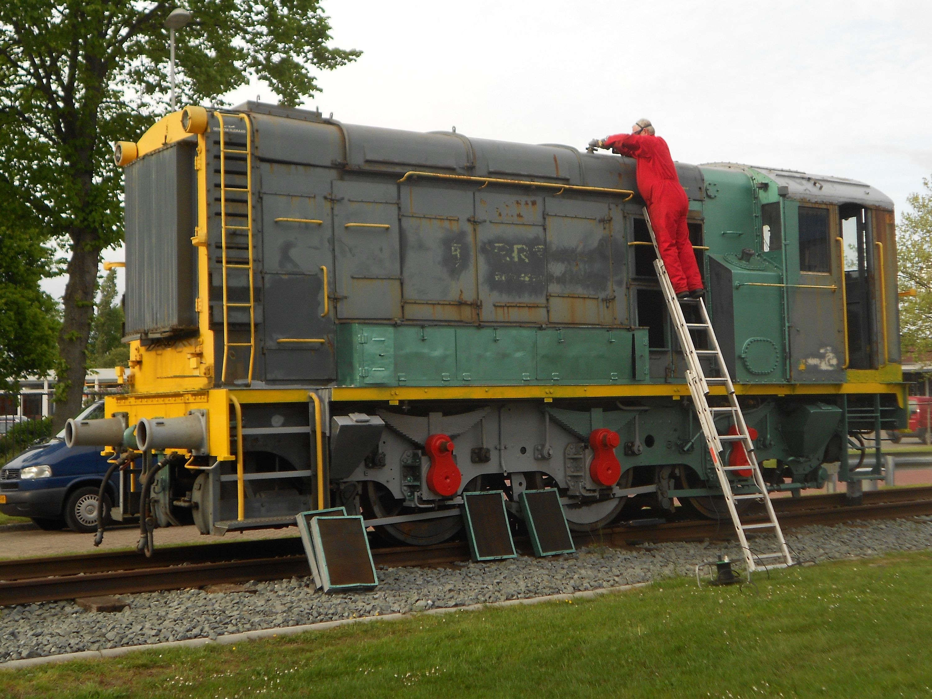 Schoonmaken locomotief op 14 mei 2016Op 14 mei hebben we onze locomotief weer grondig schoongemaakt!![]() Verplaatsing locomotief op 8 december 2015Op 8 december is de locomotief 8 m verplaatst in westelijke richting. De locomotief heeft zodoende enkele meters gereden.![]() ![]() Open Dag Philips 20 september 2014Enkele honderden bezoekers hebben tijdens de Open Dag van de Philips op zaterdag 20 september onze locomotief bekeken. We kregen ook nog even bezoek van een oude bus van het merk Berna (uit 1964). Hieronder een kleine impressie van de dag.![]() ![]() ![]() ![]() Open Monumentendag 13 september 2014Op zaterdag 13 september konden bezoekers tijdens de Open Monumentendag een kijkje nemen bij en in onze locomotief. Rond de honderd bezoekers hebben gebruik gemaakt van deze mogelijkheid. Zes personen hebben zich tijdens deze dag aangemeld als donateur en verder zijn er leuke gesprekken gevoerd over treinen en de historie van Drachten. De bezoekers konden naast de loc ook een kijkje nemen bij een aantal oude auto's (Citroën Snoek en een Alfa Romeo: beiden uit 1973) en een oude brommer (Sparta: 1962) en modellen van locomotieven en goederenwagons die vroeger in Drachten kwamen. De locomotief was speciaal voor deze dag uitgerust met een originele lantaarn op het front. Hieronder een impressie van de dag.![]() ![]() ![]() ![]() Het klussen aan onze locomotief van maart t/m september 2014Op zaterdag 22, 29 maart, 5 en 12 april, 10, 17, 24 en 31 mei en 7 juni en doordeweekse avonden vanaf 15 april ziis er geklust aan onze locomotief bij de Philips aan de Lange West. Zonder de inzet van onze vrijwilligers en onze vrienden van de STAR zou dit niet mogelijk zijn geweest! Onze hartelijke dank! Hieronder een korte impressie van de werkzaamheden op verschillende data.Maandag 11 augustus 2014![]() ![]() ![]() vrijdag 11 juli 2014![]() woensdag 11 juni 2014![]() ![]() ![]() Dinsdag 10 juni 2014![]() ![]() ![]() Zaterdag 7 juni 2014![]() ![]() ![]() ![]() ![]() ![]() ![]() ![]() ![]() ![]() ![]() ![]() Dinsdag 3 juni 2014![]() ![]() ![]() ![]() Maandag 2 juni 2014![]() ![]() ![]() Vrijdag 23 mei 2014![]() ![]() Donderdag 22 mei 2014![]() ![]() Vrijdag 16 mei 2014![]() ![]() ![]() Donderdag 15 mei 2014![]() ![]() Woensdag 14 mei 2014![]() ![]() ![]() ![]() ![]() Woensdag 7 mei 2014![]() ![]() ![]() ![]() Zaterdag 12 april 2014![]() ![]() ![]() Zaterdag 5 april 2014![]() ![]() ![]() ![]() ![]() ![]() Foto's van de plaatsing van onze loc op 20 juni 2013Op donderdag 20 juni is onze locomotief geplaatst bij de Philips aan de Lange West. Zonder de inzet van onze hoofdsponsor Witteveen Surhuisterveen was dit financieel niet mogelijk geweest! Onze hartelijke dank! Hieronder een korte impressie van de totaal bijna vijf uren durende operatie waarbij de loc is vervoerd van de Tussendiepen naar de Lange West in Drachten. De loc heeft nu een mooie plek aan de Lange West in Drachten. Met dank aan Philips.![]() ![]() ![]() ![]() ![]() Foto's van de aanleg van het spoor op 14 juni 2013De onderstaande foto's zijn door Janco den Besten gemaakt op vrijdag 14 juni 2013. 's Ochtends vroeg waren de medewerkers van Witteveen Surhuisterveen druk bezig met het aanleggen van het laatste stukje spoor bij de Philips aan de Lange West.![]() ![]() De onderstaande foto's zijn door Date Jan de Vries gemaakt op vrijdag 14 juni 2013. De medewerkers van Witteveen Surhuisterveen waren net klaar met het aanleggen van de spoorlijn bij de Philips aan de Lange West. ![]() Foto's transport van de loc op 6 mei 2010De onderstaande foto's zijn door Date Jan de Vries gemaakt op 6 mei 2010. Op deze dag heeft het transport van de loc van Rotterdam Feijenoord naar Drachten Tussendiepen plaatsgevonden. De eerste zes foto's laten het takelen en het voor het transport gereedmaken van de loc zien. De twee foto's daarna laten het transport door Rotterdam zien. Op de negende foto zien we de aankomst van de loc op de Tussendiepen in Drachten. De resterende foto's laten het plaatsen van de loc op de Tussendiepen zien.![]() ![]() ![]() ![]() ![]() ![]() ![]() ![]() ![]() ![]() ![]() ![]() ![]() ![]() ![]() Terug naar boven | |